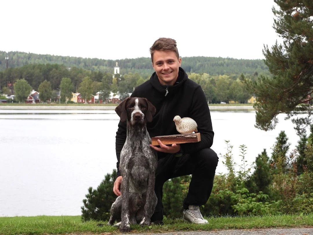 Manne är en mycket glad och lättlärd hund som har hög samarbetsvilja. Manne är fortfarande en oerfaren jakthund som har mycket kvar att lära, men det jobbar vi på! -